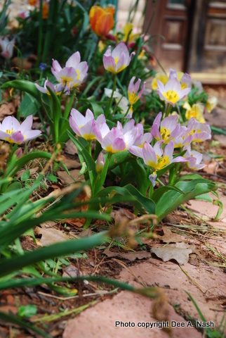Thanks for showing all these different views of your garden, Dee. Nothing like seeing the tulips in the early morning and smelling the heavenly scent of daffodils to get the day off to a good start! I love those little pink species tulips; I may have to break down and add some species to my tulip collection, too.